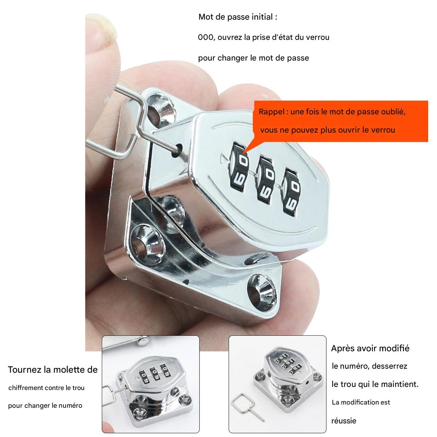 Sécurité renforcée : combinaison à code personnalisable, sans clé.